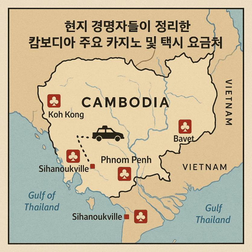 현지 경험자들이 정리한 정보! 캄보디아 주요 카지노 위치 및 택시 요금 총정리 가이드